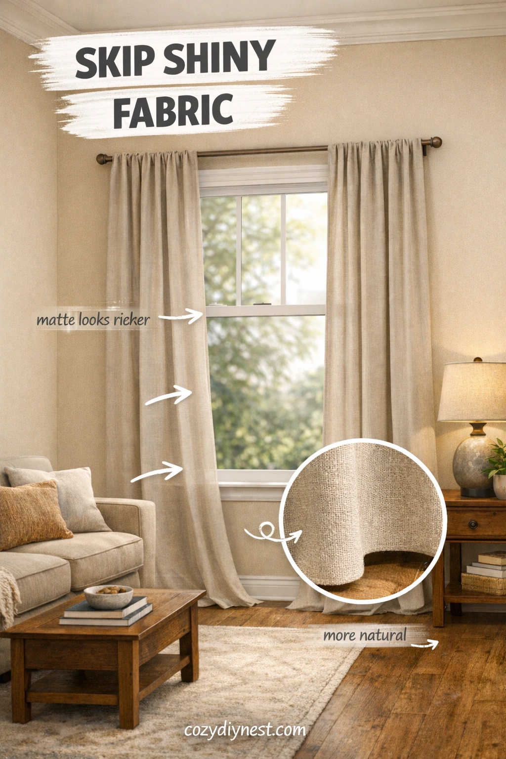 If the room is already warm and elegant but the curtains still feel off, the finish of the fabric may be the exact problem.
