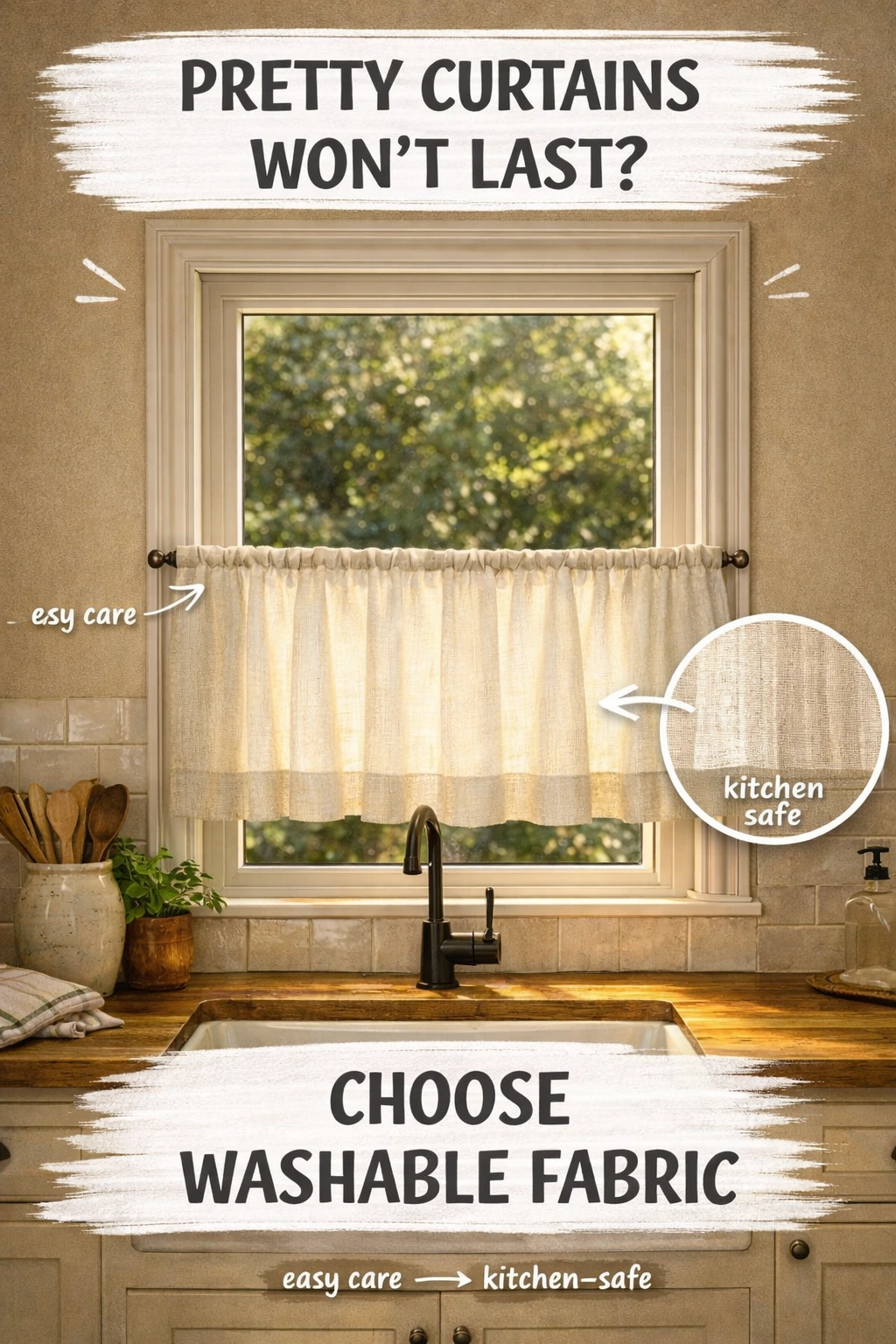 6. Choose Washable Fabric So the Kitchen Window Treatment Survives Real Life