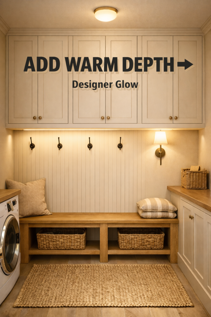 Flat overhead lighting can make even beautiful cabinetry feel cold. Layered lighting introduces depth and warmth.