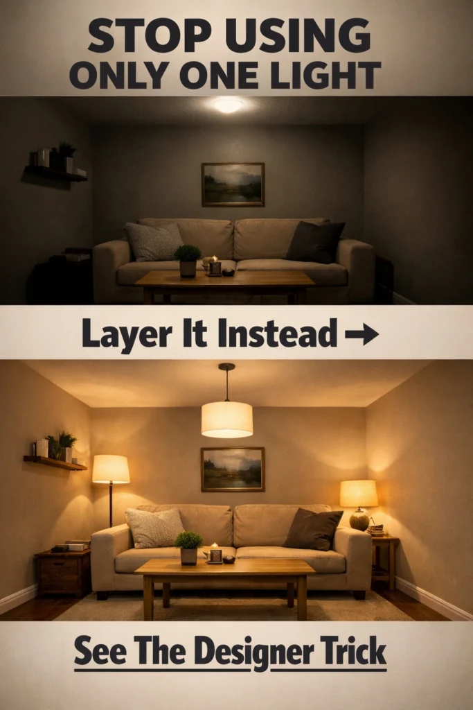 Layered lighting is the one design strategy American interior magazines consistently recommend for small living rooms and apartments. If your space feels flat, cramped, or visually compressed, the issue usually isn’t square footage — it’s how light is distributed.